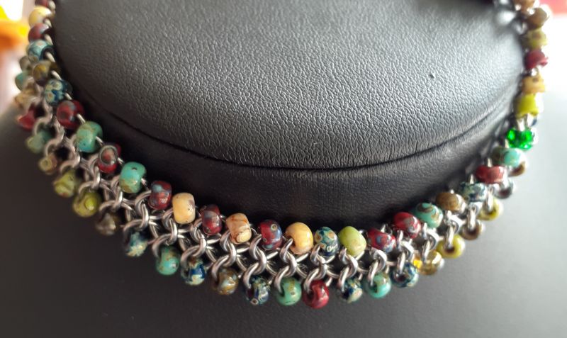 Silver Stainless Steel 1mm rings - European 4 in 1 weave. This bracelet feels beautiful to wear, with it's colourful Japanese Miyuki Beads. The clasp is stainless steel lobster clasp. Please email shop@minnie-mae.com with the length you would like this bracelet.