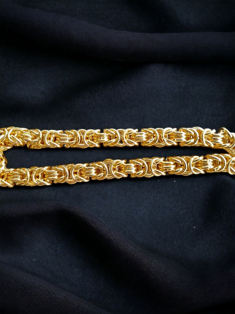 Gold Plated Stainless Steel rings make up this bracelet - Byzantine weave. This bracelet looks like solid gold, and it has weight.