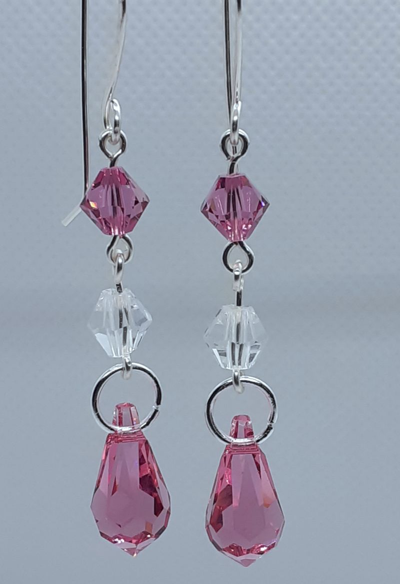 About this piece: Beautiful Teardrop (Swarovski®rose colour crystal) with bicone acrylic bicones dangle earring.